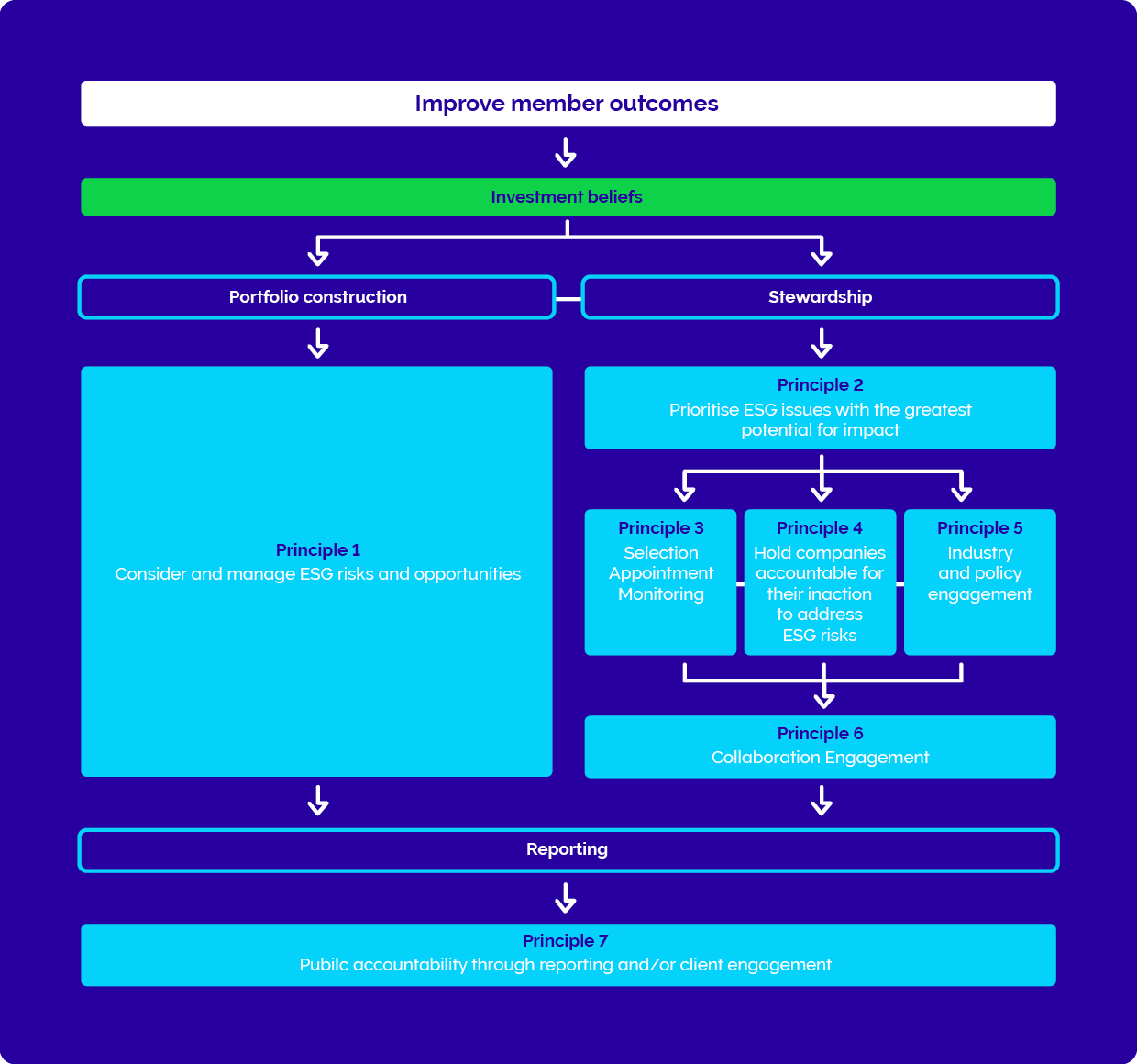 We aim to be responsible investors of our members’ assets and believe that investment decisions should reflect environmental, social and governance (ESG) considerations